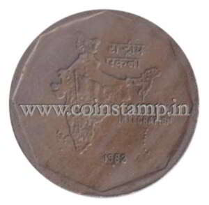 2 Rupees National Integration; round type 1982 @ coins and stamp