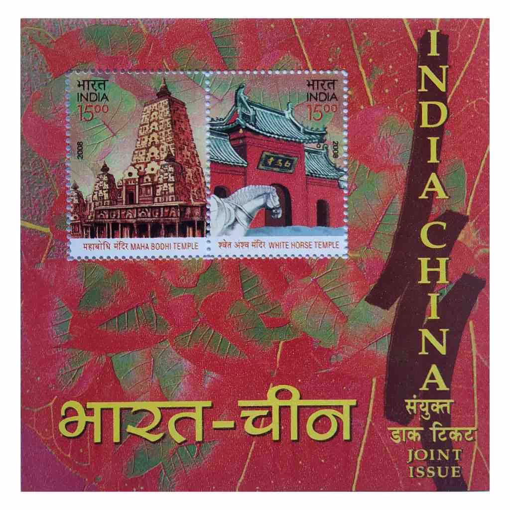 2008 India-China Joint Issue Maha Bodhi Temple Miniature Sheet AUNC