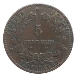France Third Republic 5 Centimes 1879 Used