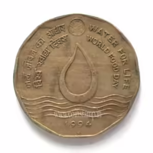 India 2 Rupees FAO World Food Day – Water For Life 1994 Mumbai Mint used