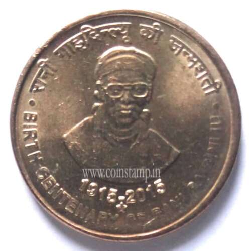 5 Rupees Republic India Birth Centenary of Rani Gaidinliu AUNC