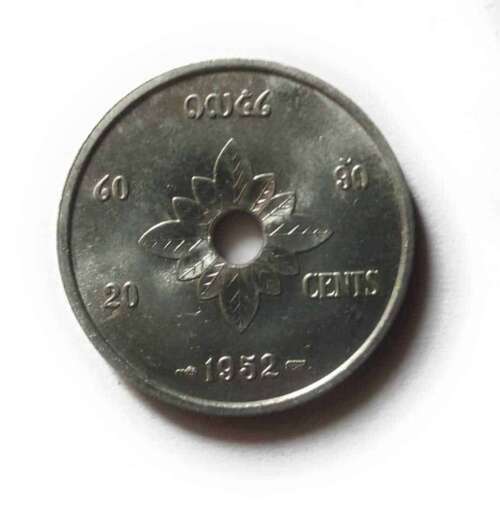 Laos Kingdom 20 cents Sisavang Vong Hole Coin 1952 Used