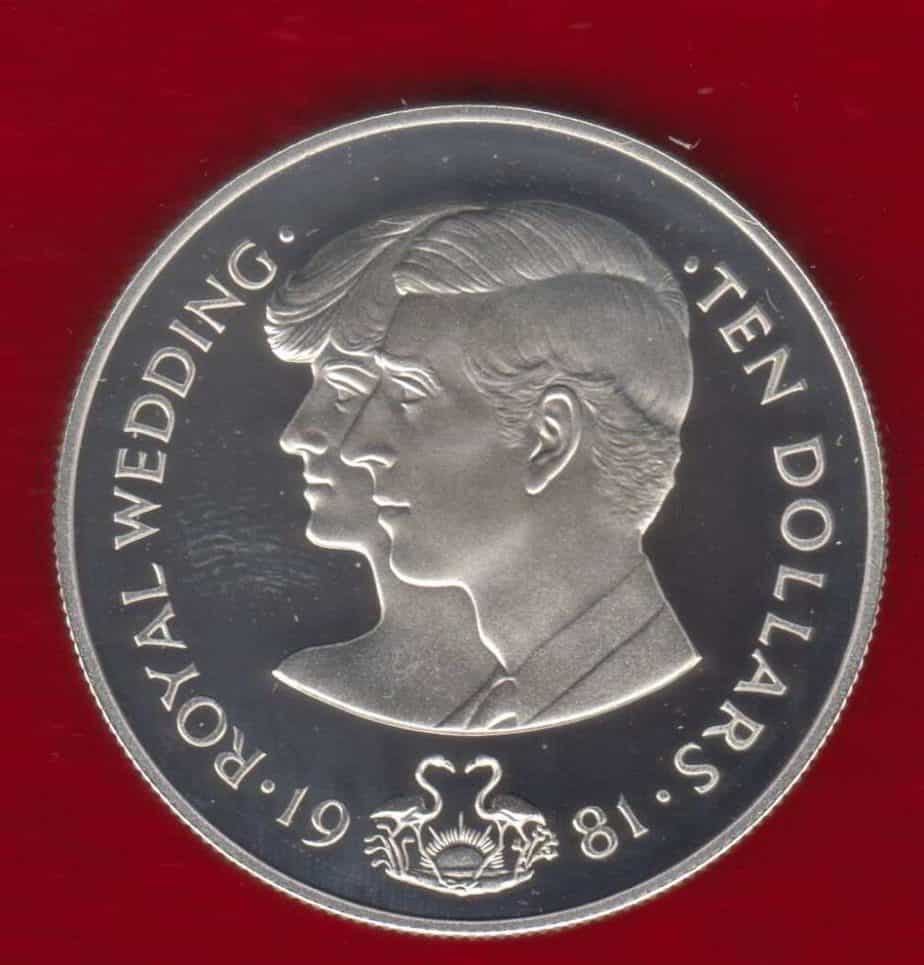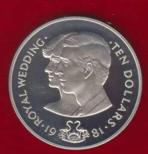 • Bahamas 10 Dollars Charles Diana Royal Wedding Silver Proof Coin
