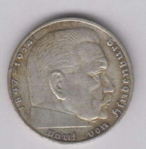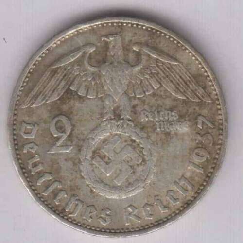 Germany Third Reich Hitler Period Silver 2 Mark Paul von Hindenburg