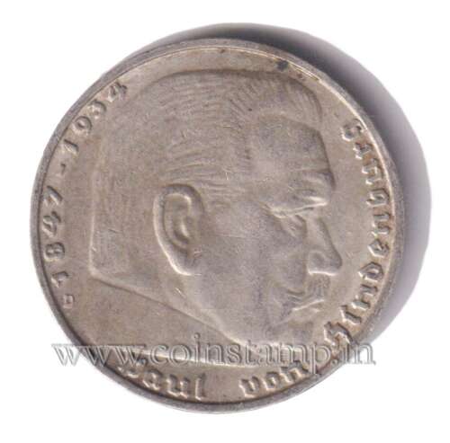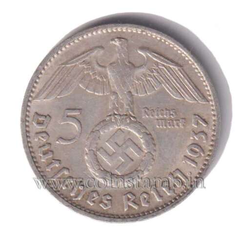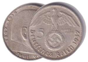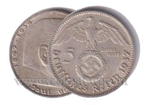 Germany Third Reich World war Period Silver 5 Marks Paul von Hindenburg
