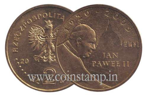 Poland 2 Zloty Pope John Paul 2nd AUNC