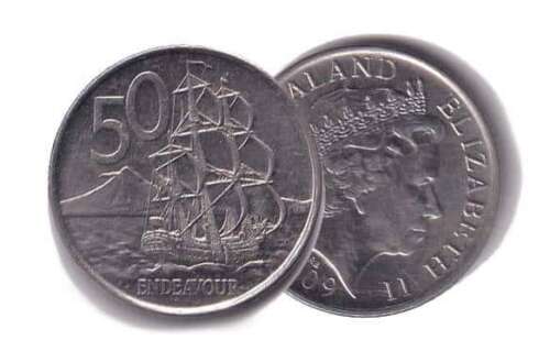 New Zealand 50 Cents HMS Endeavour Ian Rank-Broadley FRBS portrait