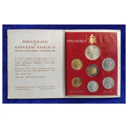 Vatican City Pontiff John Paul II Anno X Mint 1988 Set MCMLXXXVIII