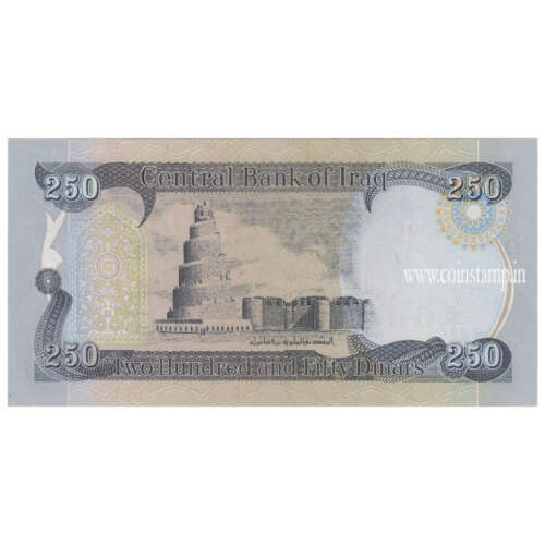 Iraq 250 Dinars with Marks for the Visually Impaired AUNC