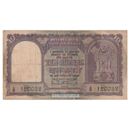 India Republic 10 Rupees P. C. Bhattacharya Fine Condition